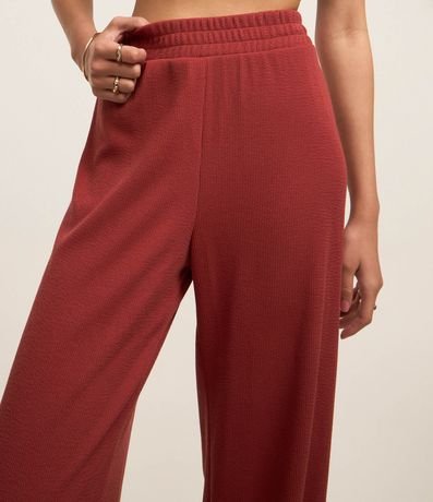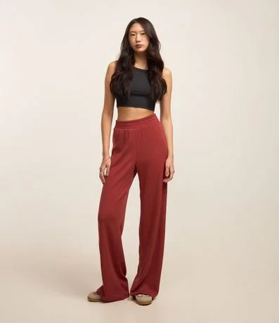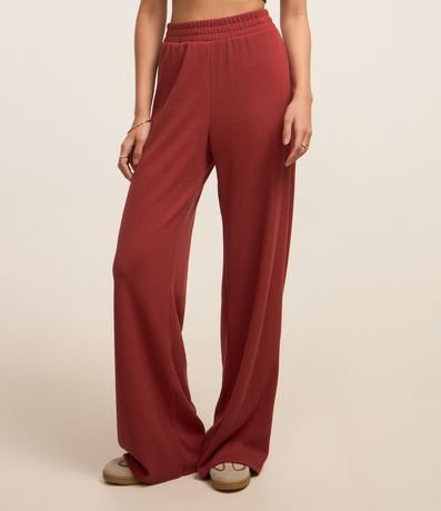 Ref: Calça reta em ribana com cós largo em elástico, texturizada confeccionada em boas práticas ambientais e sem estampa.