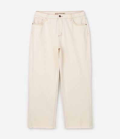 Ref: Calça feminina Curve & Plus Size confeccionada em sarja, com tecido de algodão certificado. Possui modelagem reta, fechamento frontal por botão e zíper, bolsos frontais e traseiros funcionais. Barra com acabamento desfiado, trazendo detalhe diferenciado à peça.