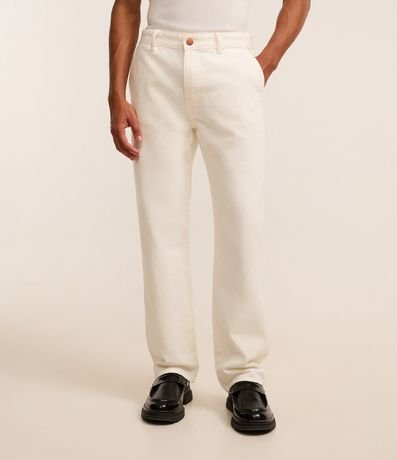 Ref: Calça masculina confeccionada em sarja mais sustentável, no modelo reto. Possui cós com passante, fechamento tradicional, bolsos e etiqueta aplicada.