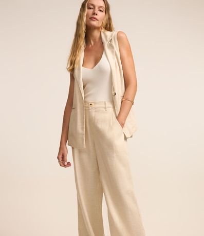 Ref: Calça reta confeccionada em sarja, com cintura média e passantes no cós.