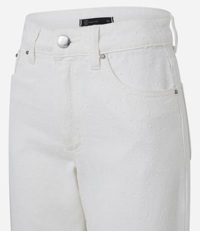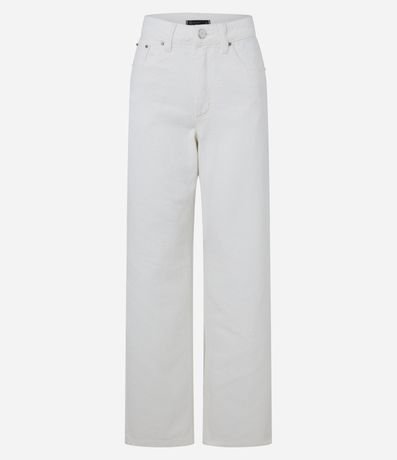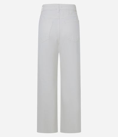 Ref: Calça reta com cintura alta, passantes no cós, confeccionada em sarja com algodão bci mais sustentável e textura de gotinhas.
