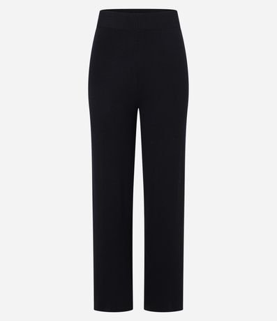 Ref: Calça feminina de modelo reto, confeccionada em tricô, com cós elástico e sem estampa.