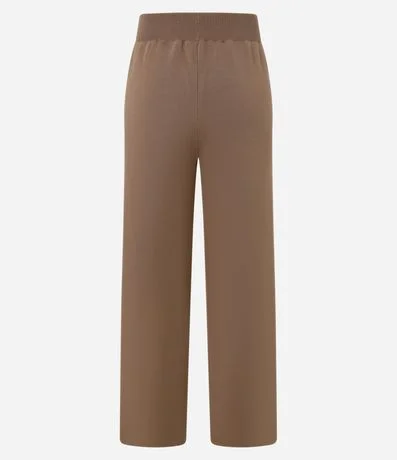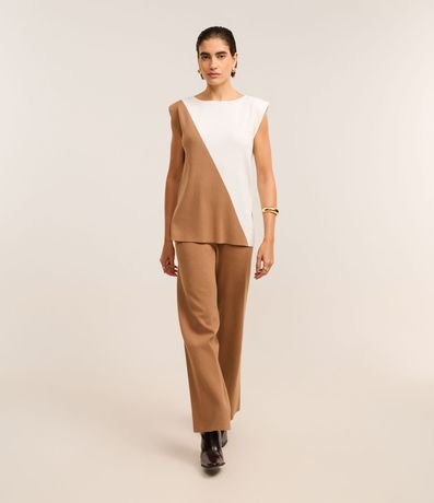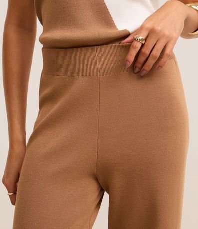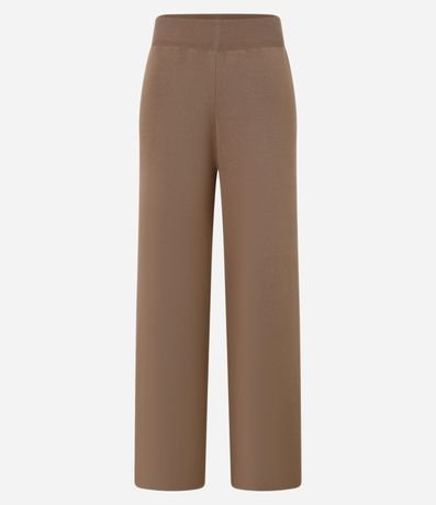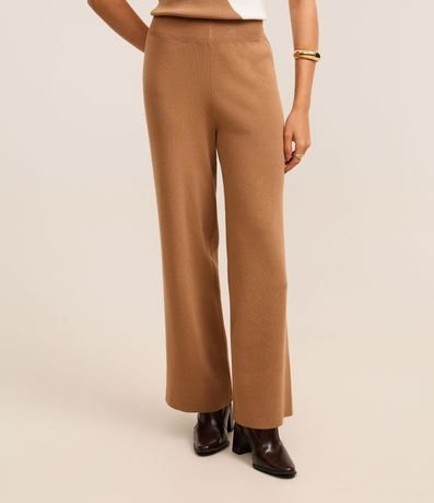 Ref: Calça feminina de modelo reto, confeccionada em tricô, com cós elástico e sem estampa.