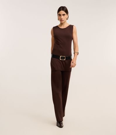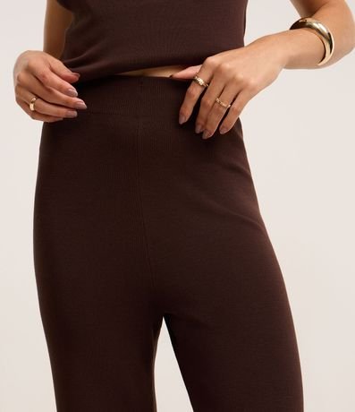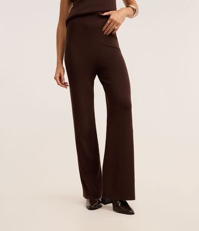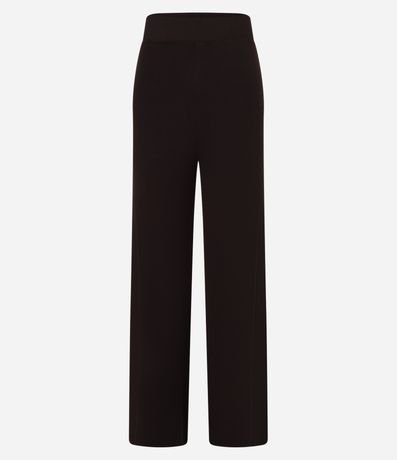 Ref: Calça feminina de modelo reto, confeccionada em tricô, com cós elástico e detalhe de friso lateral.