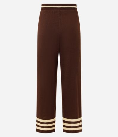 Ref: Calça feminina confeccionada em tricô mais sustentável através de boas práticas ambientais, no modelo reta. Possui cintura alta e cós ajustável por cordão, garantindo conforto e estilo, bolsos laterais funcionais e detalhes em listras contrastantes na barra e no cós, que adicionam um toque moderno à peça. Ideal para looks casuais sofisticados.