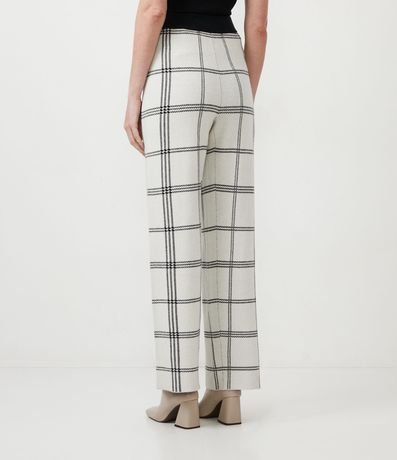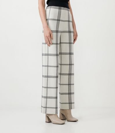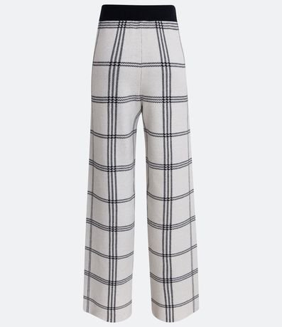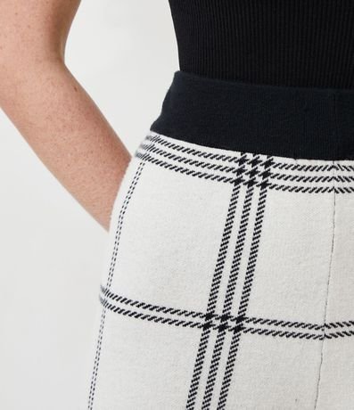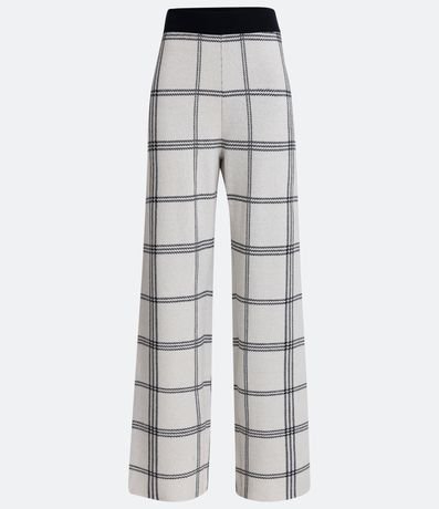 Ref: Calça reta em tricô, com cintura alta, cós contrastante e estampado xadrez grid.