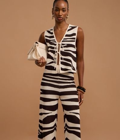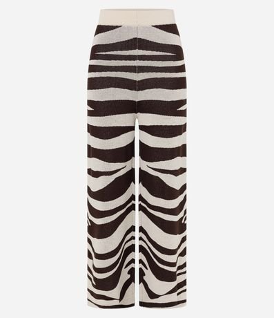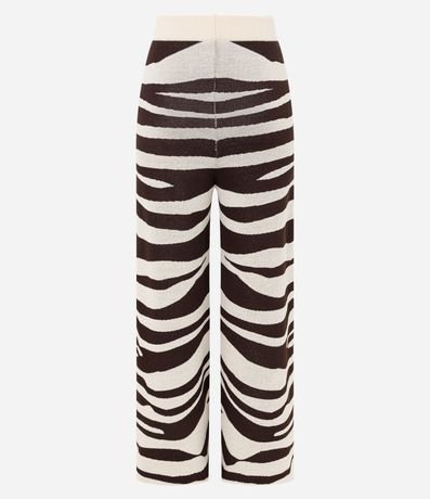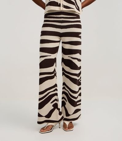 Ref: Calça reta, confeccionada em tricô, com estampa de animal print de zebra. Este produto possui material mais sustentável em sua composição, sendo ambientalmente mais responsável.