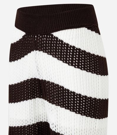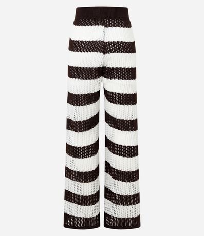 Ref: Calça reta confeccionada em tricô leve, ponto aberto, cintura alta e com listras largas.