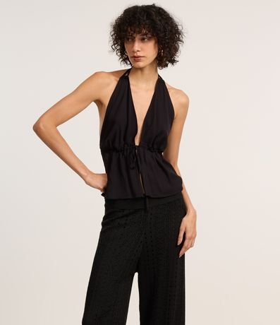 Ref: Calça reta confeccionada em tricô com ponto aberto, cintura alta e produzida atravéz de boas práticas ambientais.