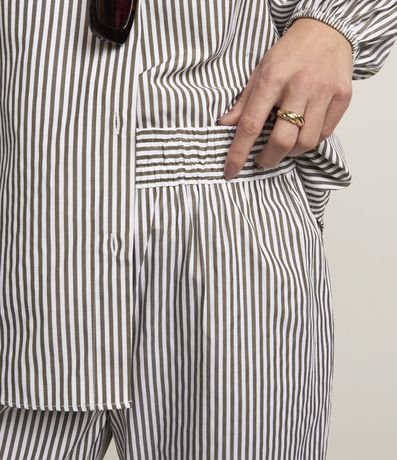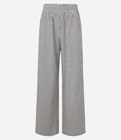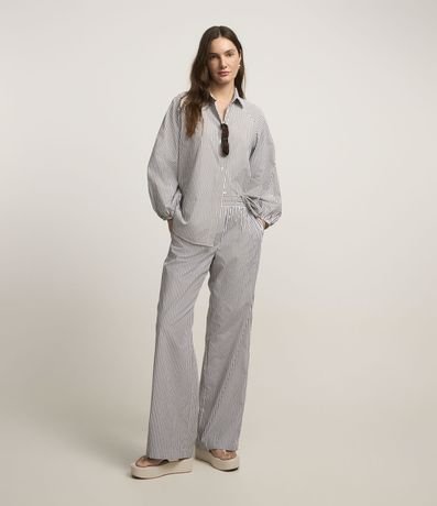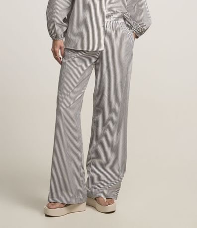 Ref: Calça feminina confeccionada em tricoline, de modelo reta, com cós largo, bolsos e estampa listrada.