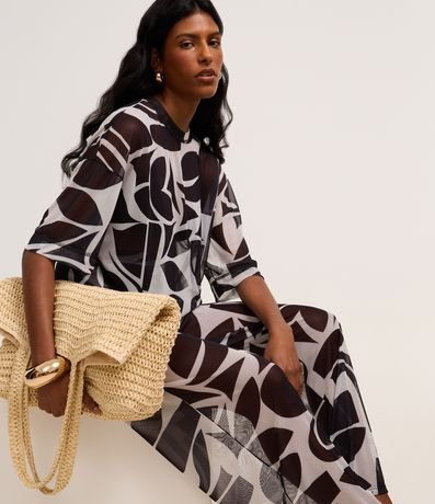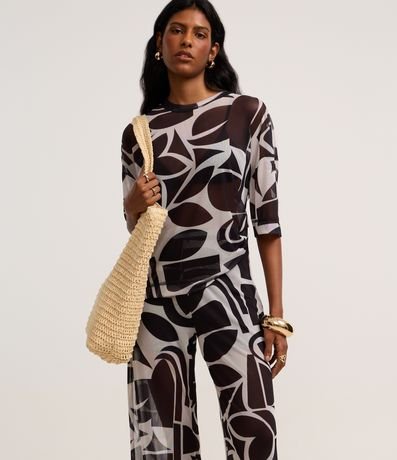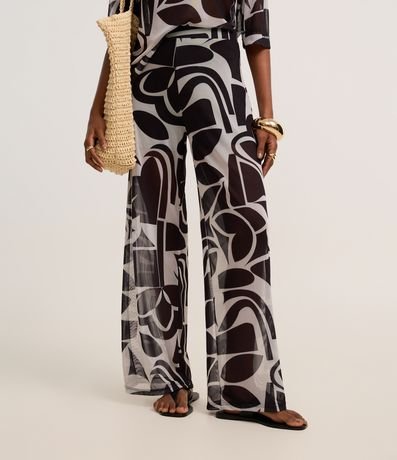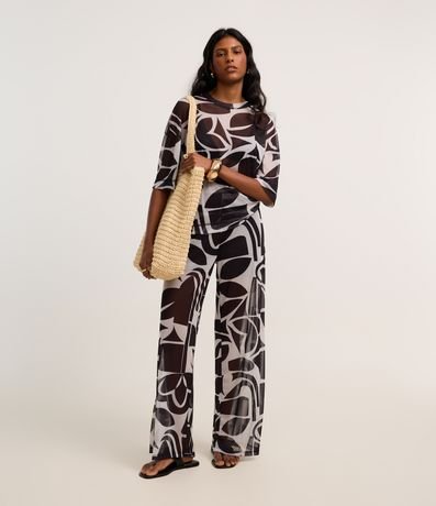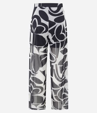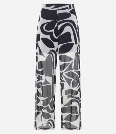 Ref: Calça reta, confeccionada em tule, com estampa abstrata. Peça bicolor e com forro.