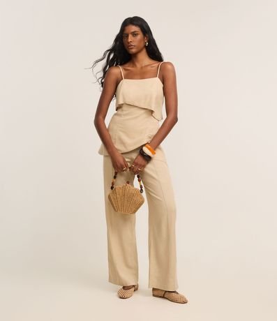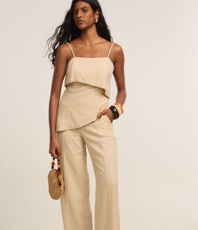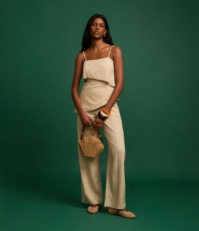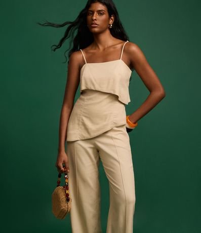 O viscolinho é uma mistura de linho e viscose. O material proporciona toque macio, caimento fluido e um visual sofisticado à peça. Além disso, traz conforto e leveza ao look, perfeito para os dias atuais.