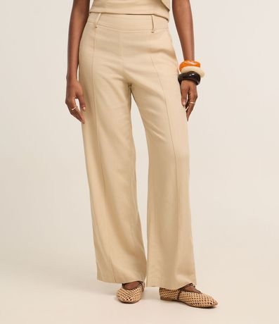 Ref: Calça reta, confeccionada em viscolinho, com passantes no cós, frisos e bolEste produto possui viscose certificada em sua composição, sendo ambientalmente mais responsável.