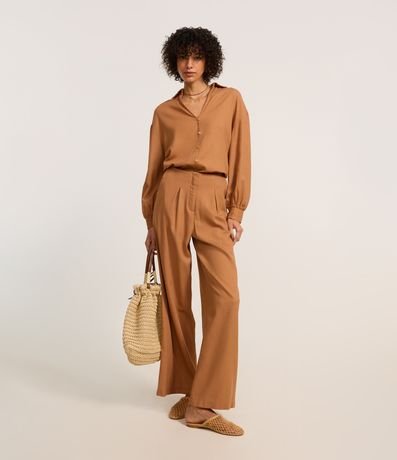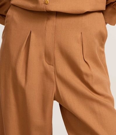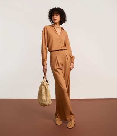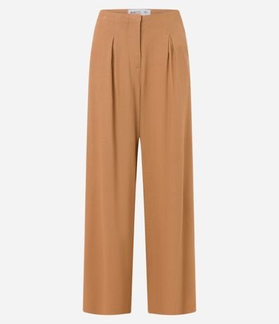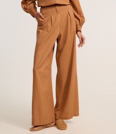 Ref: Calça alfaiatada feminina de modelo reto, confeccionada em viscolinho com pregas frontais e sem estampa. Possui fechamento frontal com zíper.