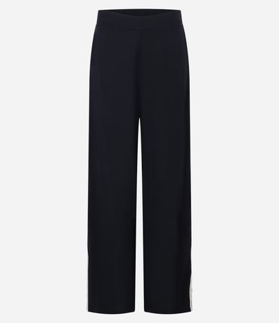 Calça Reta em Viscose com Detalhe Contrastante na Lateral
