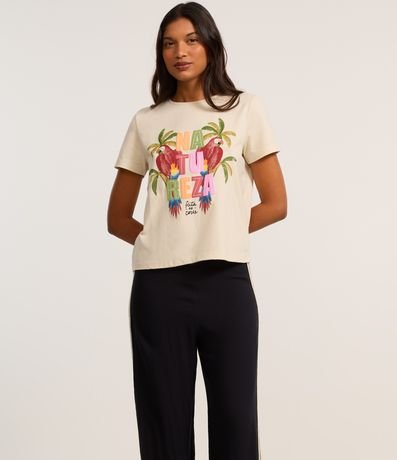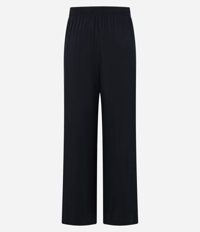 Calça reta com cós elástico, confeccionada em viscose certificada mais sustentável e detalhe lateral com aviamento contrastante.