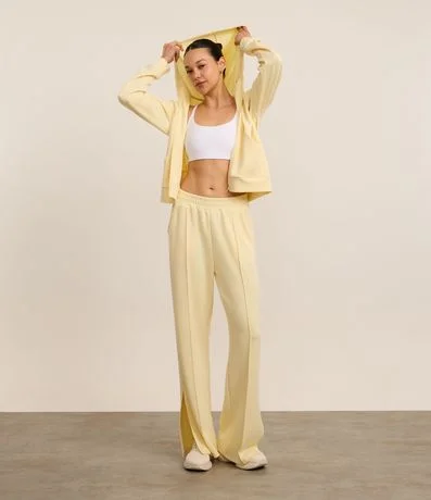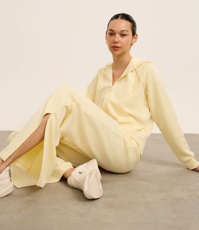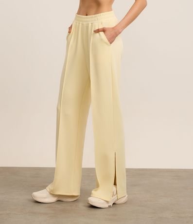 Calça Reta Esportiva em Meia Malha com Fenda Lateral