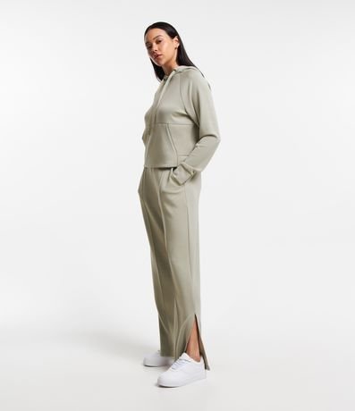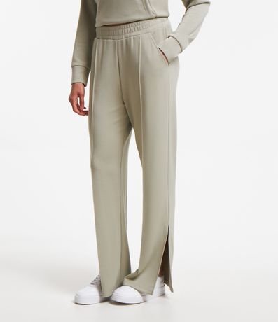 Calça Reta Esportiva em Meia Malha com Fenda Lateral