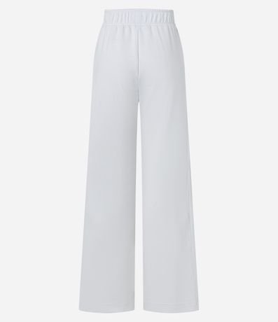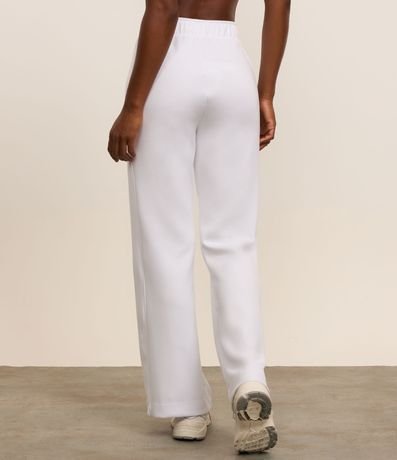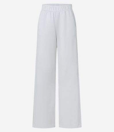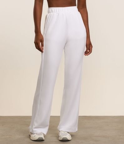Calça feminina esportiva, de modelo reto, com cós elástico e bolsos. A peça não possui estampa.