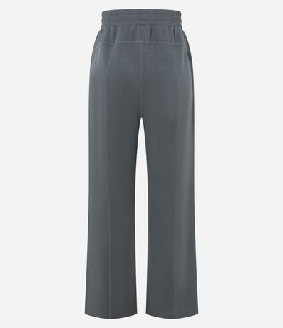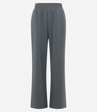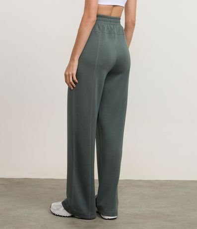 Calça feminina esportiva confeccionada em modal. Possui modelagem reta e comprimento longo, cós com elástico embutido e detalhe de trançadeira na parte frontal.