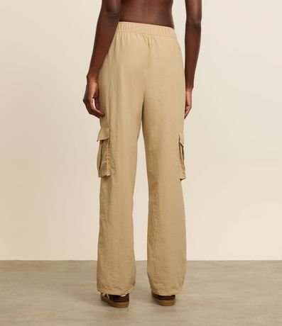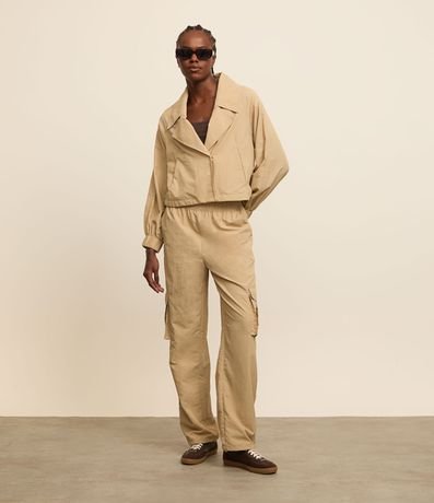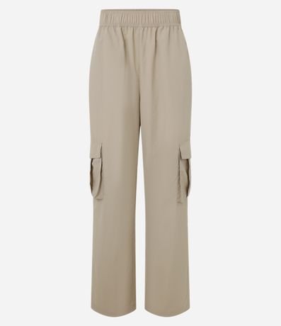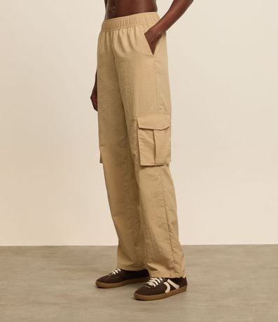 Ref: Calça feminina em poliamida no modelo reta esportiva com cós elástico e bolsos laterais cargo.
