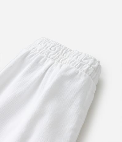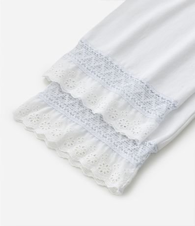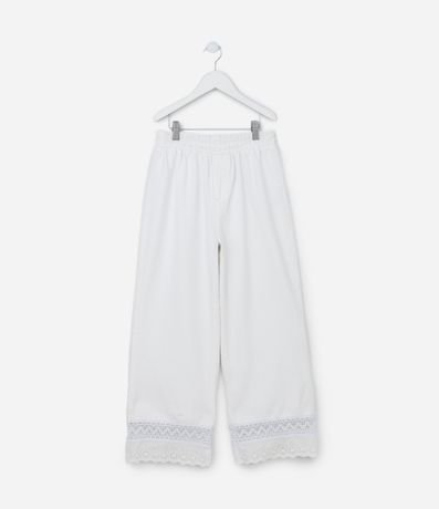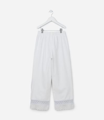 Ref: Calça reta infantil confeccionada em sarja, com cós elástico e detalhe de renda na barra. Não possui estampa.