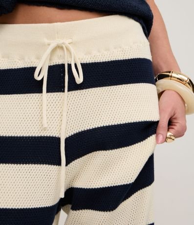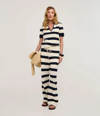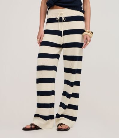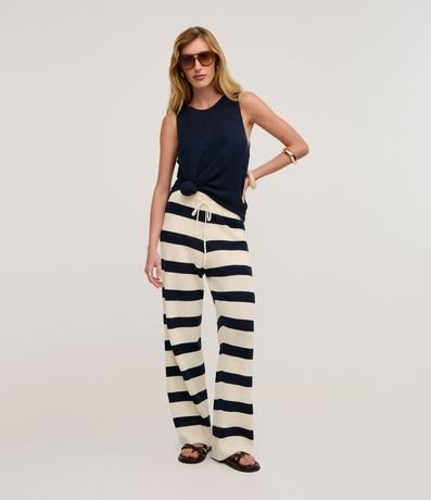 Ref: Calça reta, confeccionado em tricô, com elástico no cós, amarração e listras horizontais largas. Este produto possui material mais sustentável em sua composição, sendo ambientalmente mais responsável.