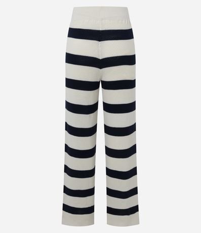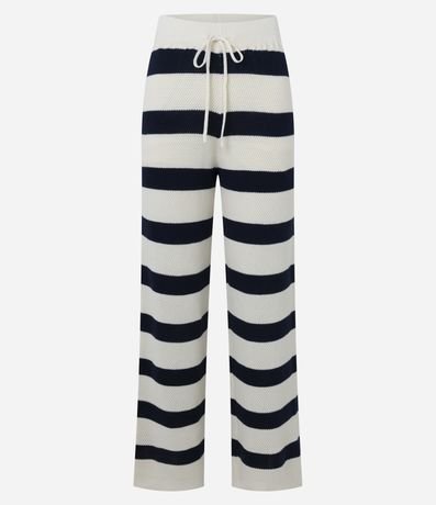 Ref: Calça reta, confeccionado em tricô, com elástico no cós, amarração e listras horizontais largas. Este produto possui material mais sustentável em sua composição, sendo ambientalmente mais responsável.