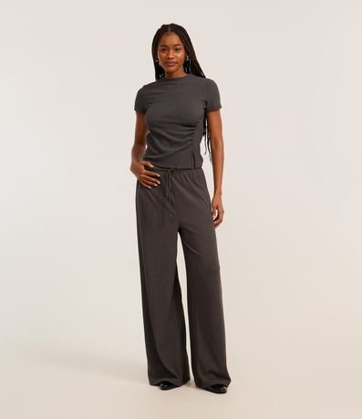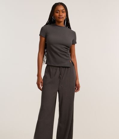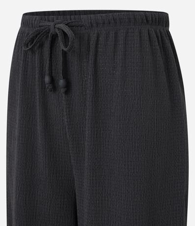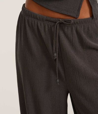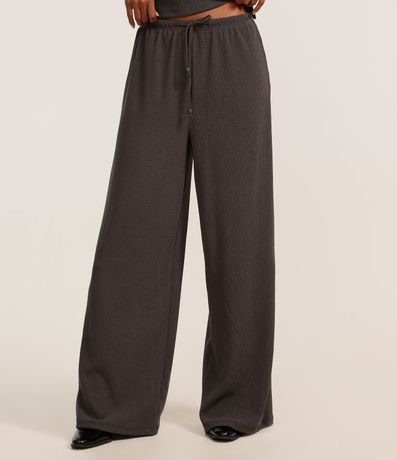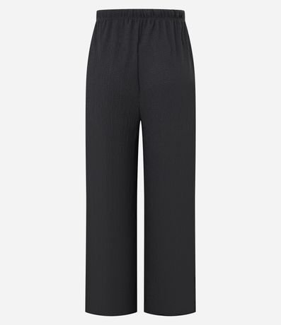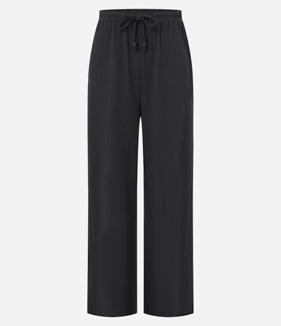 Calça reta texturizada com cós elástico, cordão para amarração e confeccionada com elastano produzida em boas práticas ambientais.