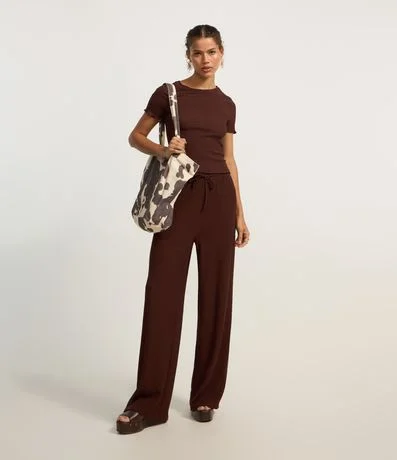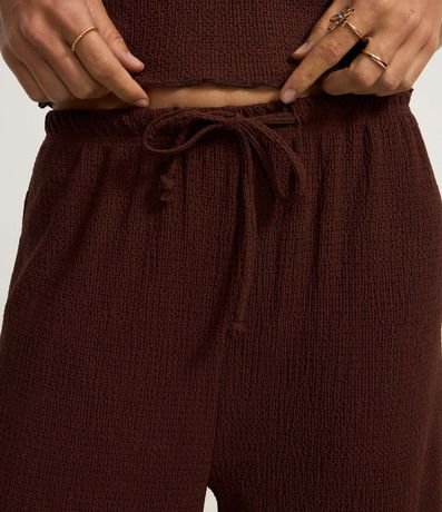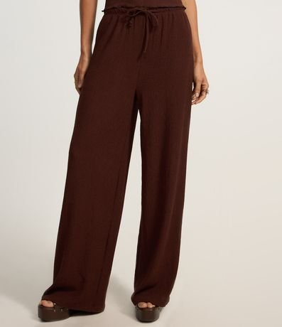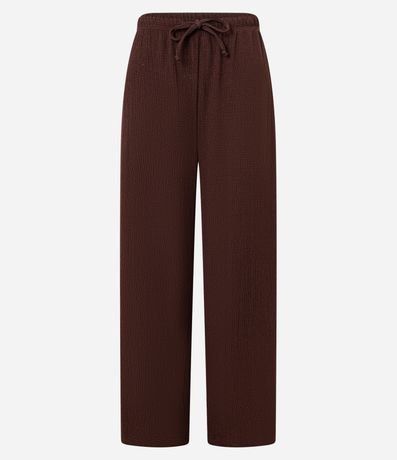 Ref: Calça reta texturizada com amarração no cós elástico, sem estampa e produzida em boas práticas ambientais.