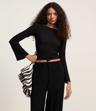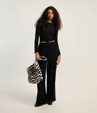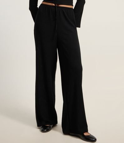 Ref: Calça reta texturizada com amarração no cós elástico, sem estampa e produzida em boas práticas ambientais.