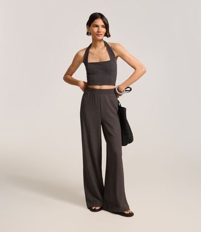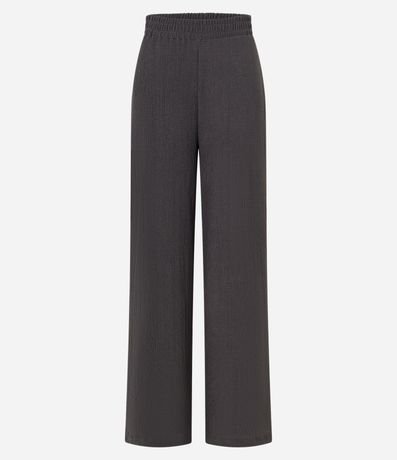 Ref: Calça reta, texturizada com cintura alta, cós elástico e sem estampa.