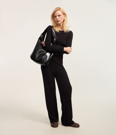 Ref: Calça reta em malha quentinha, confeccionada em viscose mais sustentável e cós fixo.