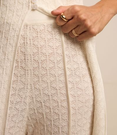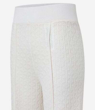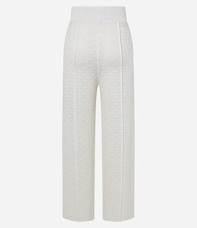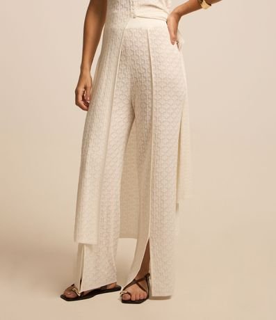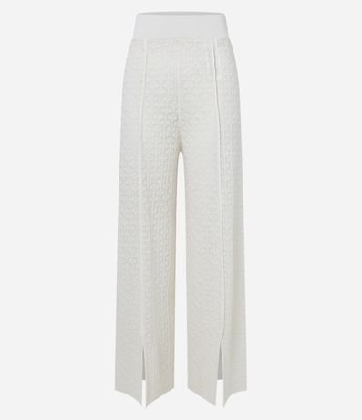 Ref: Calça feminina confeccionada em tricô leve, de modelo reta e com cintura média. Possui textura de pontos trabalhados e detalhe de fendinhas na parte frontal.