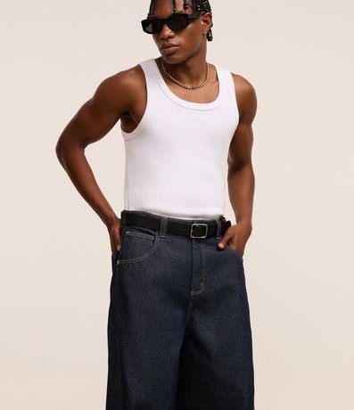 Ref: Calça masculina confeccionada em jeans mais sustentável com boas práticas ambientais, no modelo skater. Possui cós com passante, fechamento tradicional, bolsos, costuras contrastantes e recortes.