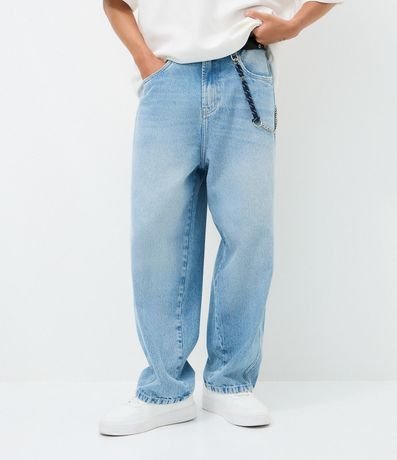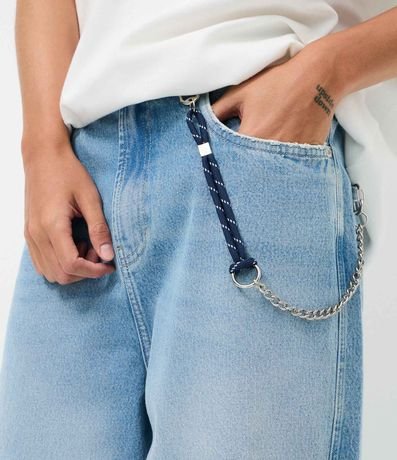 Ref: Calça jeans masculina modelo Skater, confeccionada a partir de algodão com certificação BCI, com recorte e cordão.
