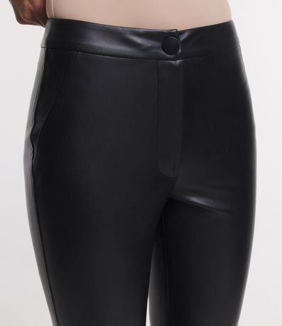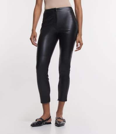 Ref: Calça legging skinny feminina, confeccionada em material sintético, com abotoamento no cós e superfície sem estampa.