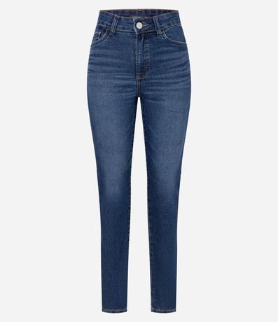 Calça skinny confeccionada em jeans com algodão bci mais sustentável, cintura alta e lavagem dirty.