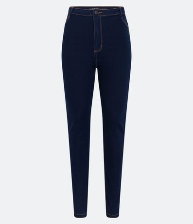 Calça Skinny em Jeans com Pespontos Contrastantes e Cintura Alta