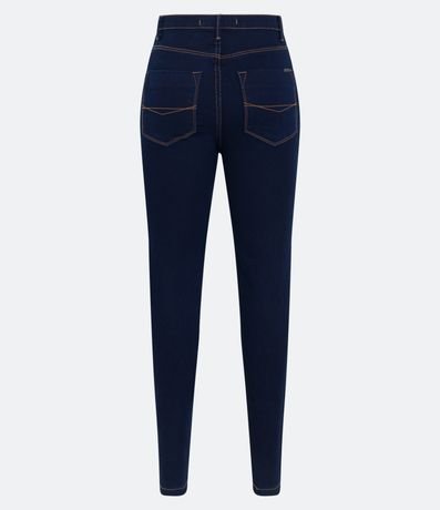 Calça skinny cintura alta em jeans com bolsos e pespontos contrastantes. Confeccionada em material responsável.