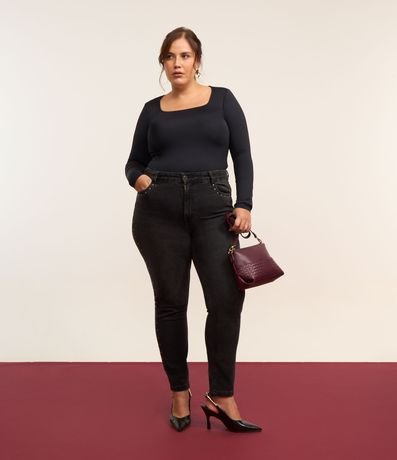 Ref: Calça jeans plus size, modelo skinny, com ajuste elástico no interior do cós, bolsos, fechamento tradicional e passantes na cintura. Por conter elastano na composição, a calça oferece maior conforto.