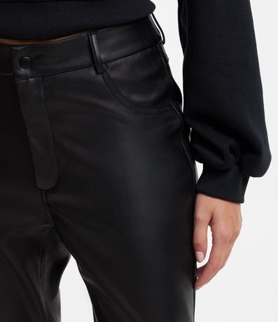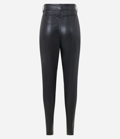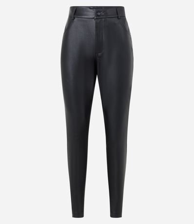 Ref: Calça skinny, confeccionada em material sintético, pu, com passantes e botão no cós.