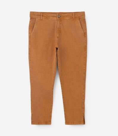 Ref: Calça skinny confeccionada em sarja com elastano e algodão mais sustentável, sem estampa. A calça tem passantes na cintura, bolsos traseiros embutidos, bolsos frontais faca, botão tartaruga e fendinhas nas barras.