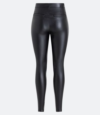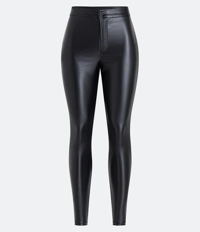 Calça skinny em sarja resinada, com cintura média e tecido com efeito brilhoso.