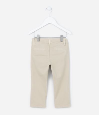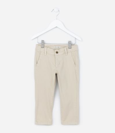 Ref: Calça infantil confeccionada em sarja, de modelo skinny, com passantes no cós e bolsos faca. Sem estampa, possui fechamento frontal com botão e zíper.