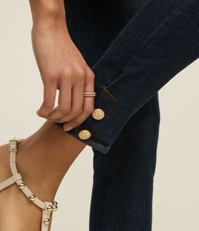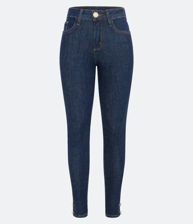 Calça Skinny Jeans com Pespontos Contrastantes e Botões na Barra