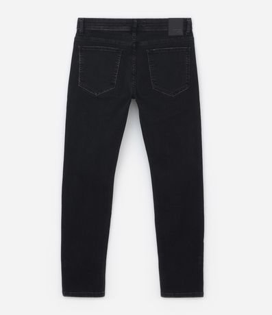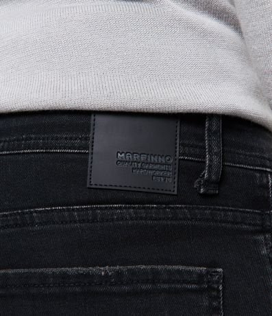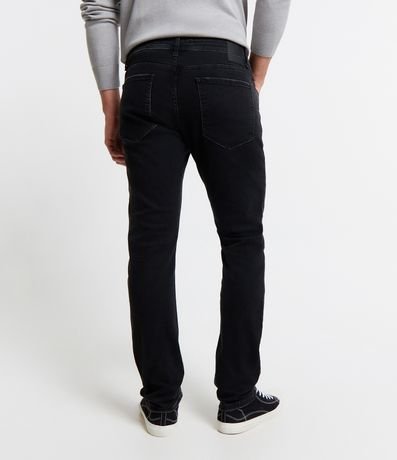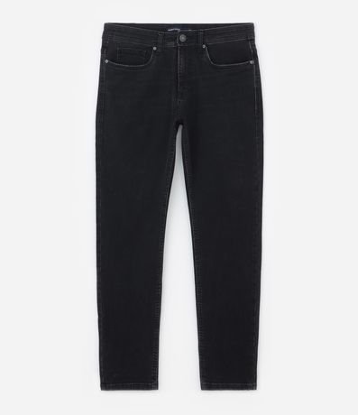 Ref: Calça slim, básica masculina em jeans com cós com passantes, fechamento por botão e zíper, bolsos e efeito estonado nas costuras.