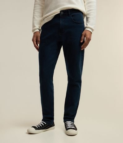 Ref: Calça masculina básica slim, confeccionada em jeans, com passantes e fechamento simples no cós.