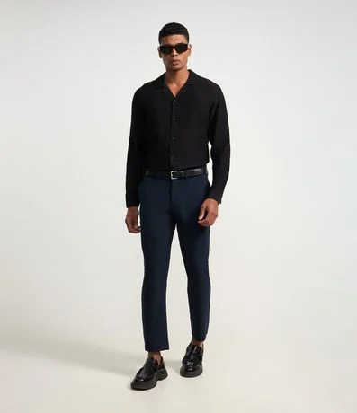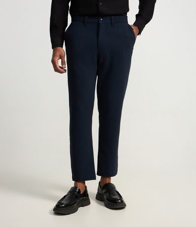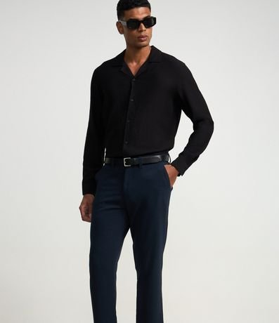 Ref: Calça masculina confeccionada em viscose mais sustentável com boas práticas ambientais, no modelo slim. Possui cós elástico, com passante, fechamento tradicional, bolsos e alfaiatada.