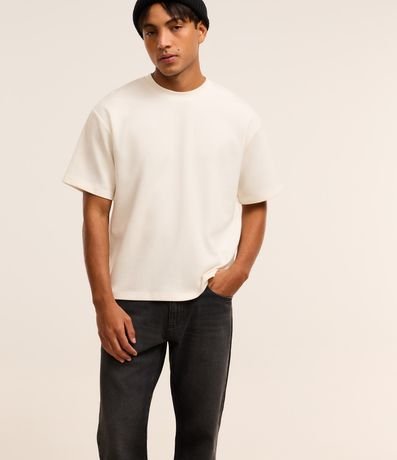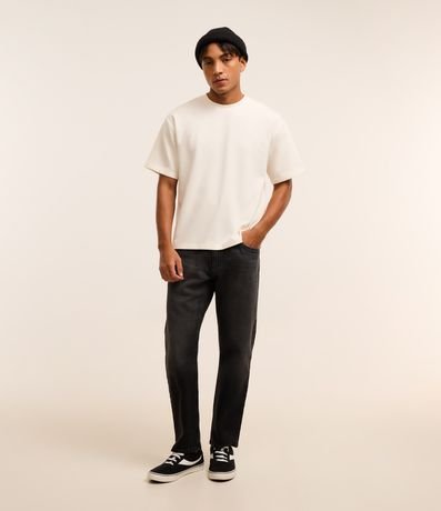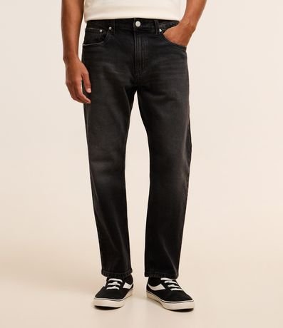 Calça masculina em jeans confeccionada em material mais sustentável e boas praticas ambientais, cós com passante, fechamento tradicional, bolsos no modelo slim cropped.